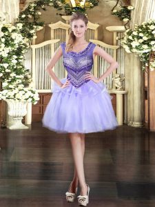 Sophisticated Lavender Tulle Lace Up Scoop Sleeveless Floor Length Quinceanera Dresses Beading and Ruffles