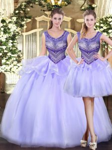 Home >  Quinceanera Dresses >  Discount Quinceanera Dresses > Sophisticated Lavender Tulle Lace Up Scoop Sleeveless Floor Length Quinceanera Dresses Beading and Ruffles