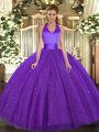 Sophisticated Purple Tulle Lace Up Ball Gown Prom Dress Sleeveless Floor Length Sequins