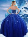 Sophisticated Royal Blue Strapless Lace Up Beading Vestidos de Quinceanera Sleeveless