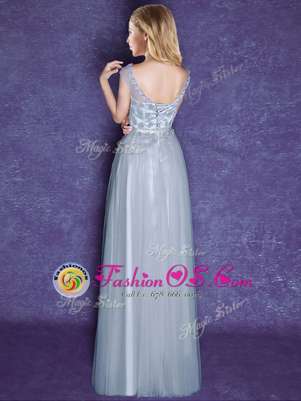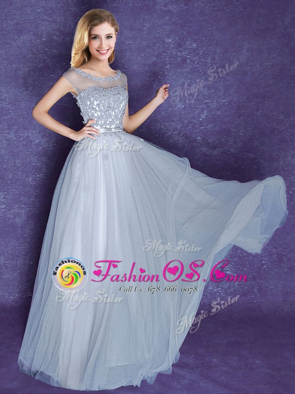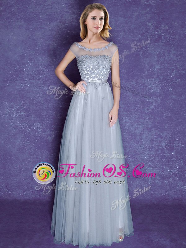 Sophisticated Scoop Cap Sleeves Appliques and Bowknot Lace Up Quinceanera Court Dresses