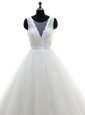 Sophisticated Scoop Sleeveless Brush Train Clasp Handle With Train Lace Wedding Gown