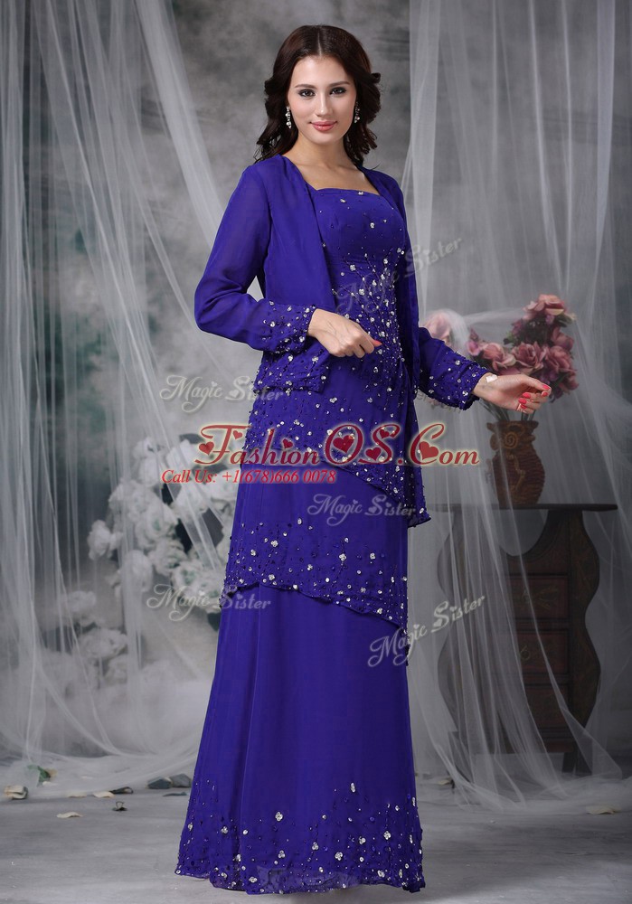 Sophisticated Sleeveless Zipper Floor Length Beading Mother Of The Bride Dress