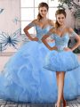 Sophisticated Tulle Off The Shoulder Sleeveless Lace Up Beading and Ruffles Quinceanera Gown in Blue