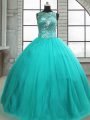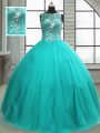Sophisticated Turquoise Sleeveless Tulle Lace Up Ball Gown Prom Dress for Military Ball and Sweet 16 and Quinceanera