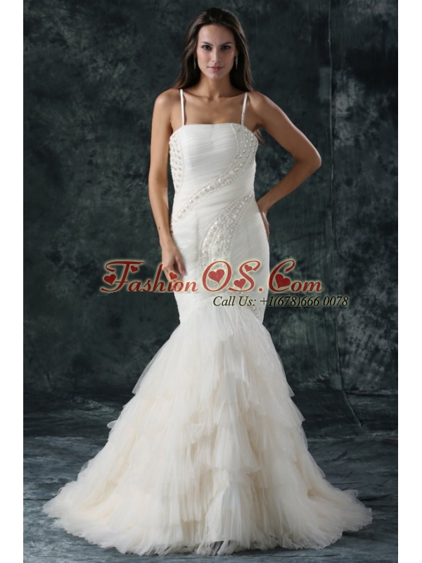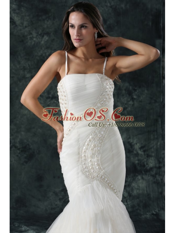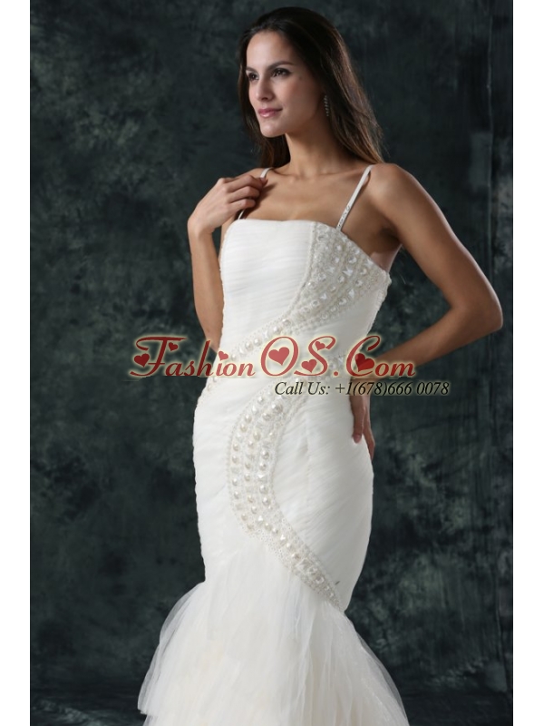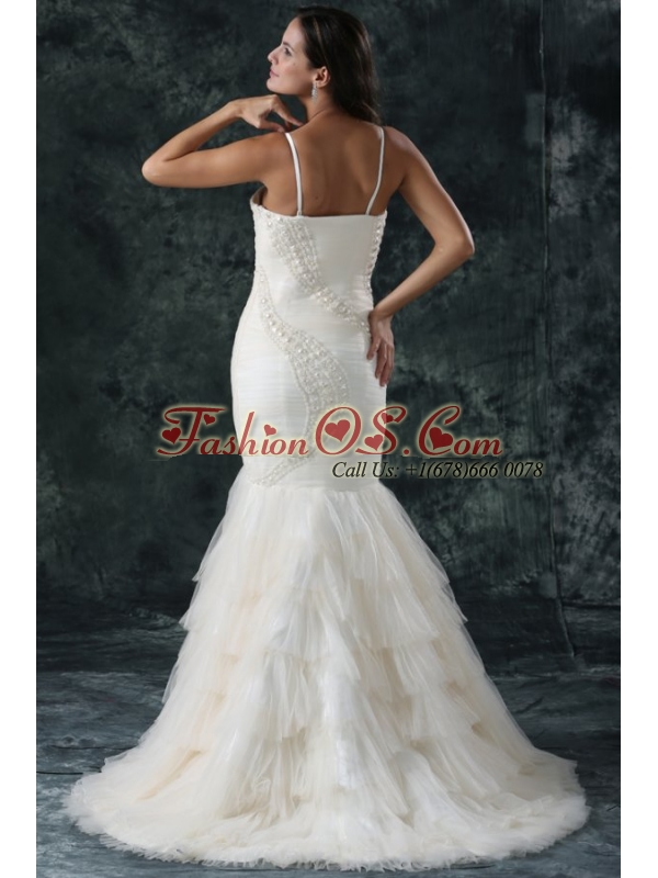 Spaghetti Strap Mermaid Beaded Decorate Tulle Wedding Dress