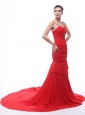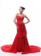 Home >  Prom Dresses >  Beautiful Prom Dresses > Spaghetti Straps Red Beaded Decorate and Ruch 2013 Prom Dress With Court Train