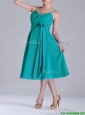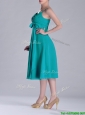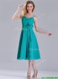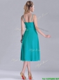 Home >  Special Occasion Dresses >  Dama Dresses for Quinceanera > Spaghetti Straps Ruched and Belted Turquoise Dama Dress in Tea Length