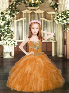 Spaghetti Straps Sleeveless Lace Up Little Girl Pageant Gowns Rust Red Tulle