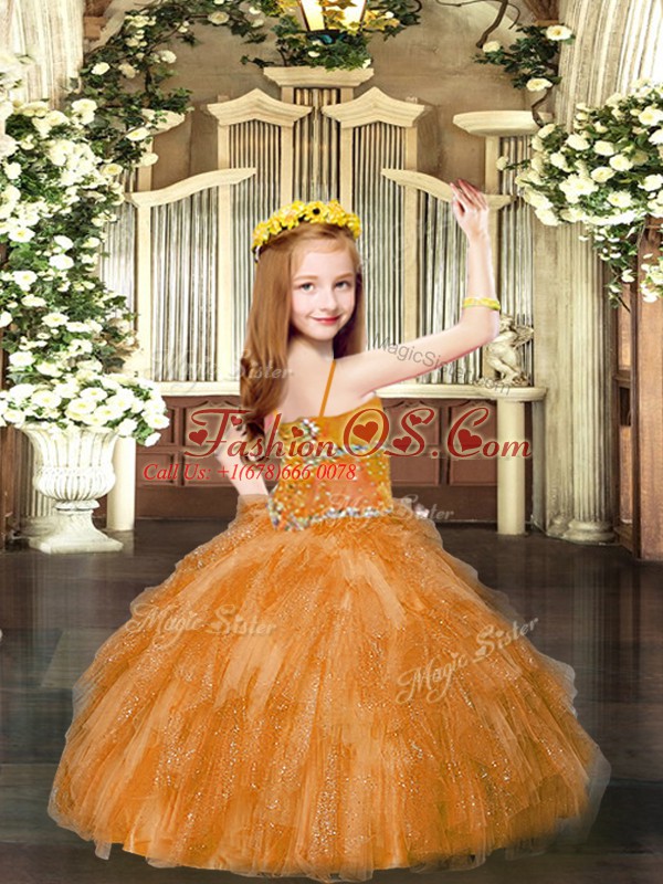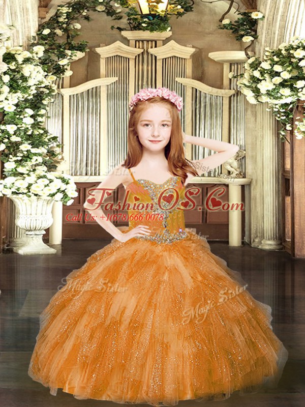 Home >  Special Occasion Dresses >  Pretty Little Girl Pageant Dresses > Spaghetti Straps Sleeveless Lace Up Little Girl Pageant Gowns Rust Red Tulle