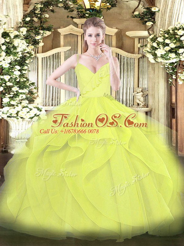 Spaghetti Straps Sleeveless Zipper Quince Ball Gowns Yellow Green and Yellow Tulle