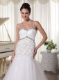 Home >  Wedding Dresses >  Beautiful Wedding Dresses > Spaghetti Straps Taffeta and Tulle A-line Wedding Dress With Beaded Decorate Up Bodice Court Train