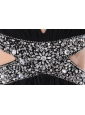 If you're looking for a great dancing dress, look no further. This one will have you saying cha cha cha in no time. The deep V- neck with two straps crossed in the open back and an asymmetrical X shap with beading drenched to shine your sexy, slim figure. The underskirt is mini-style with many tiers while the top skirt is wispy, ruffled and has an asymmetrical hem, making it longer in the back.
