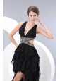 Special Black Empire V-neck High-low Evening Dress Chiffon Beading