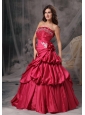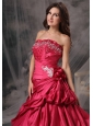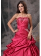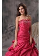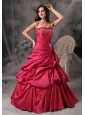 Special Coral Red A-Line / Princess Strapless Prom Dress Taffeta Beading