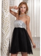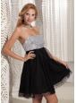 Special Fabric A-line Sequins Decorate Bust Strapless Online Black and Silver Prom / Cocktail Dress 2013