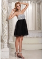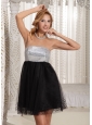Home >  Special Occasion Dresses >  Cocktail Dresses > Special Fabric A-line Sequins Decorate Bust Strapless Online Black and Silver Prom / Cocktail Dress 2013