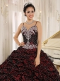 An elegant and graceful quinceanera gown for any who want to be bright at the party. It features two spaghetti straps on the bodice with a sweetheart neckline and appliques decorated the bust and waist. The highlight of the dress is accented with wave point fabric for accent. The gown owns two tiers, the outlayer is tulle with heavy and asymmetrical pick-ups, the inner layer is taffeta as the innerskirt. Such an amazing dress with an amzing price, It will be a good choice for you.