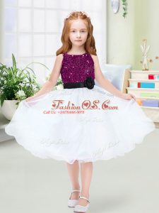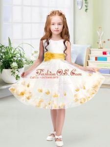 Knee Length White Flower Girl Dress Scoop Sleeveless Zipper