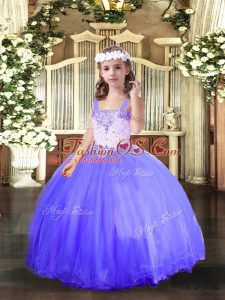 Hot Selling Blue Lace Up Straps Beading Glitz Pageant Dress Tulle Sleeveless
