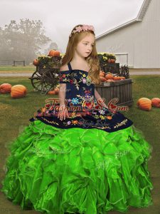 Discount Ball Gowns Winning Pageant Gowns Green Straps Organza Sleeveless Floor Length Side Zipper
