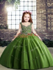 Perfect Olive Green Tulle Lace Up High School Pageant Dress Sleeveless Floor Length Beading