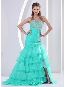 Turquoise Ruched Layered Beaded Decorate and Ruch Bodice Sweetheart Celebrity Dress