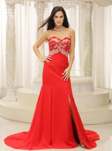 High Slit Sweetheart Appliques Decorate Bust For Celebrity Dress In South Carolina