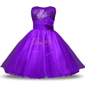 Knee Length Ball Gowns Sleeveless Purple Toddler Flower Girl Dress Zipper