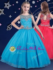 Luxury Blue Organza Zipper Scoop Sleeveless Floor Length Flower Girl Dresses Beading