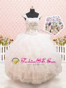 Cap Sleeves Floor Length Lace Up Flower Girl Dresses White and In for Quinceanera and Wedding Party with Beadi