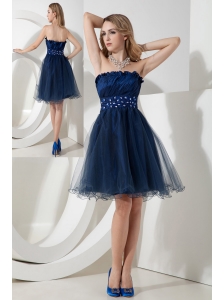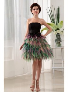 Beading Strapless A-Line Black Tulle Mini-length Prom Dress
