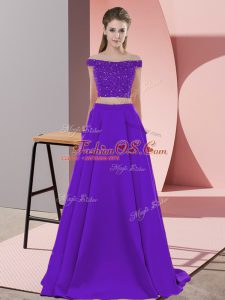Elastic Woven Satin Scoop Half Sleeves Brush Train Zipper Beading and Lace and Appliques Mother Of The Bride D