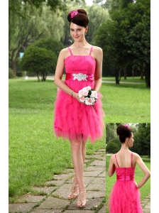 Hot Pink Empire Straps Mini-length Tulle Sashes Prom / Homecoming Dress
