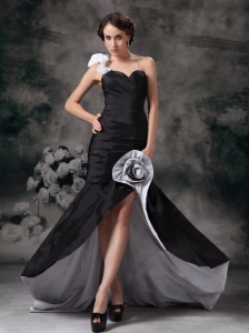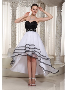 Black and White Organza High-low Sweetheart Homecoming Dress Belt Beading Decorate