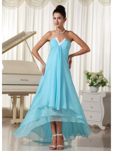Lovely Natural Waist Chiffon and Baby Blue High-low For 2013 Homecoming Dress