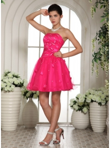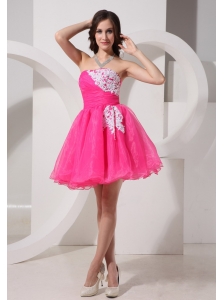2013 Hot Pink Prom Dress With Appliques and Beading Mini-length For Custom Made