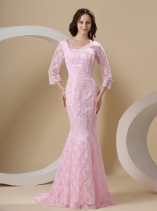 Lace Over Skirt and Scoop For Mother Of The Bride Dress With 3/4 Length