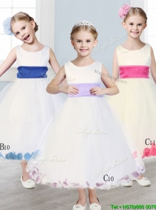 New Scoop Tulle Little Girl Pageant Dress with Sashes and Appliques