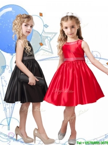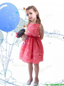 New Style Scoop Sashes and Lace Little Girl Pageant Dress in Coral Red