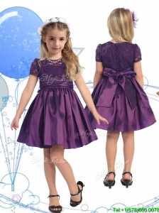 See Through Scoop Purple Little Girl Pageant Dress with Lace and Belt