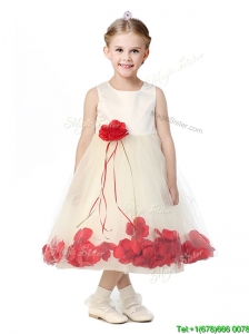 Best Scoop Little Girl Pageant Dress with Red Hand Made Flowers