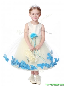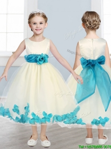 Lovely Scoop Little Girl Pageant Dress with Teal Hand Made Flowers