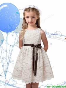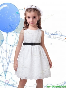 Popular Laced Scoop Little Girl Pageant Dress with Black Sashes