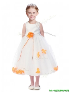 Popular Scoop Little Girl Pageant Dress with Orange Red Hand Made Flowers