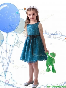 Wonderful Laced and Sashed Scoop Little Girl Pageant Dress in Teal