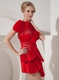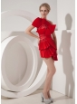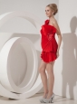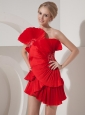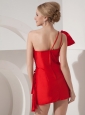 Special Red Column Short Prom Dress One Shoulder Mini-length Beading