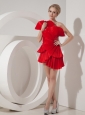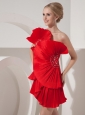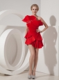Home >  Prom Dresses >  Short Prom Dresses > Special Red Column Short Prom Dress One Shoulder Mini-length Beading