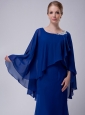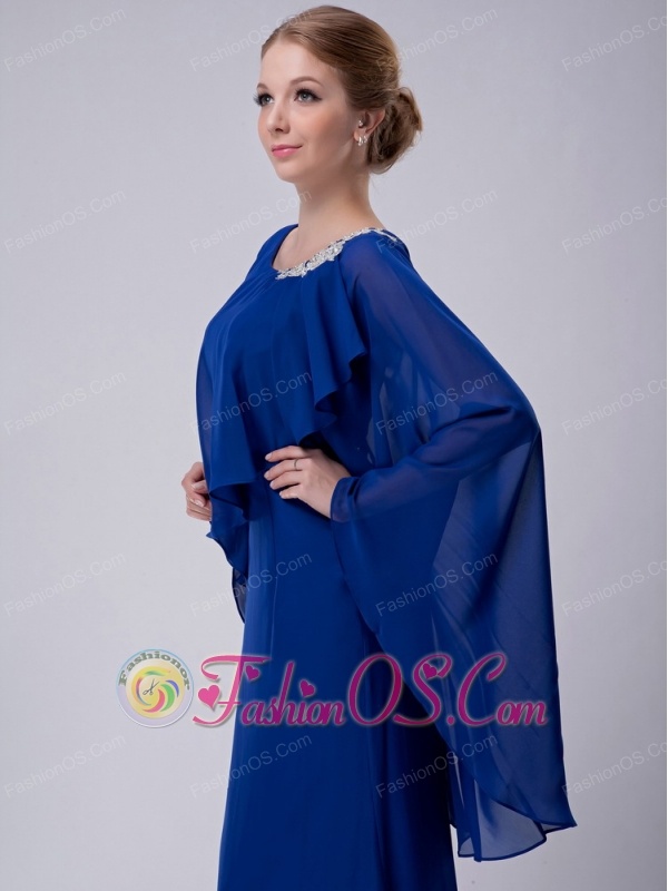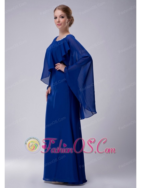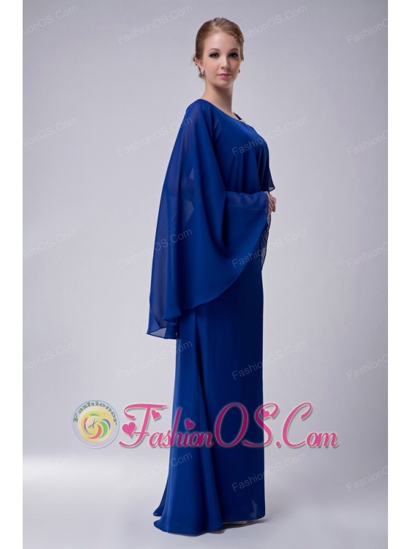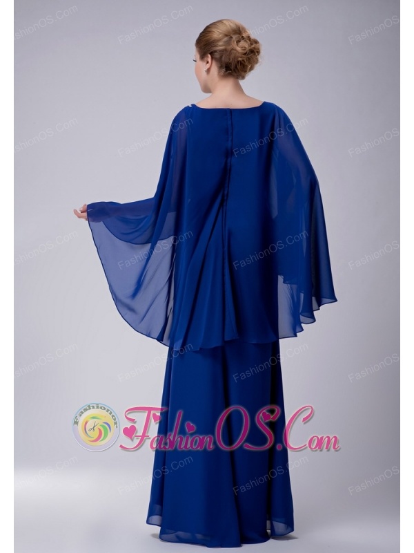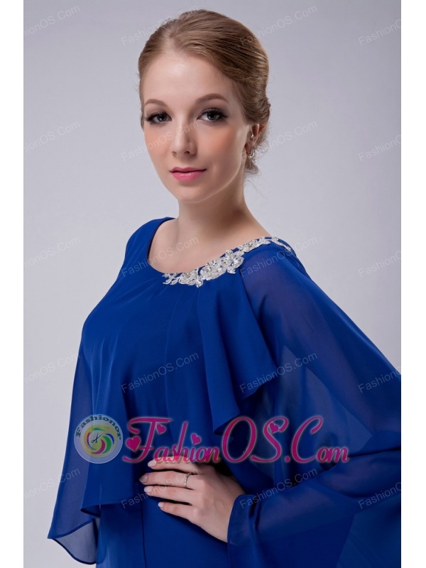 Special Royal Blue Column Scoop Mother Of The Bride Dress Floor-length Chiffon Appliques