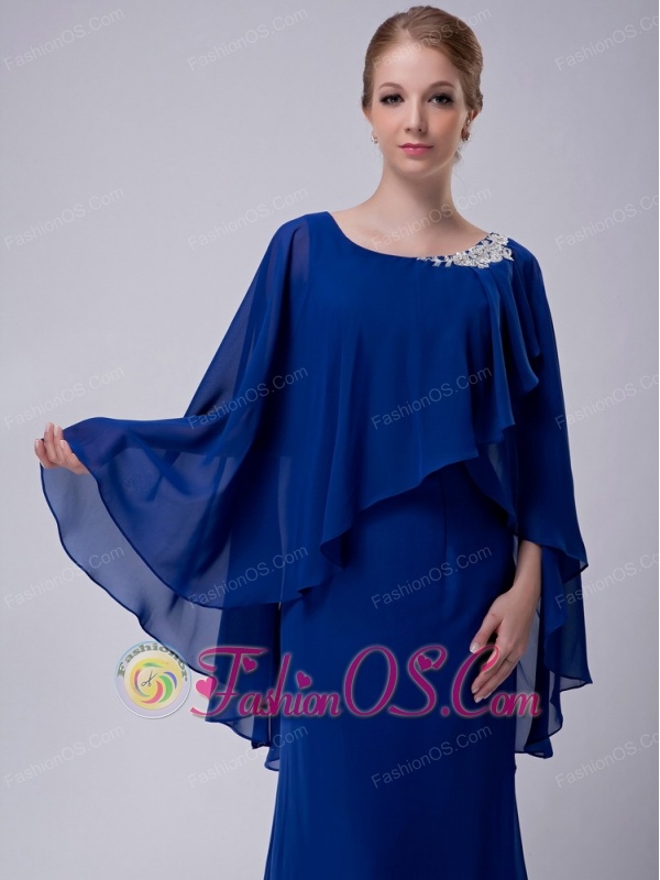 Home >  Special Occasion Dresses >  Mother of the Bride Dresses > Special Royal Blue Column Scoop Mother Of The Bride Dress Floor-length Chiffon Appliques